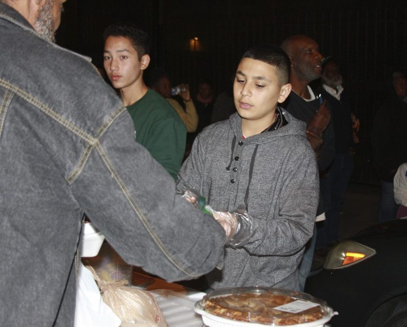 “On the Tuesday before Thanksgiving,” said Velino Salazar, SCC president, “I heard my young adult son calling other young people from our church about going to feed homeless people on L.A.’s Skid Row. So I thought I’d better join them and support this initiative. My son and daughter, along with my nephew and niece who were visiting us from Tennessee for Thanksgiving, drove with me to Skid Row.